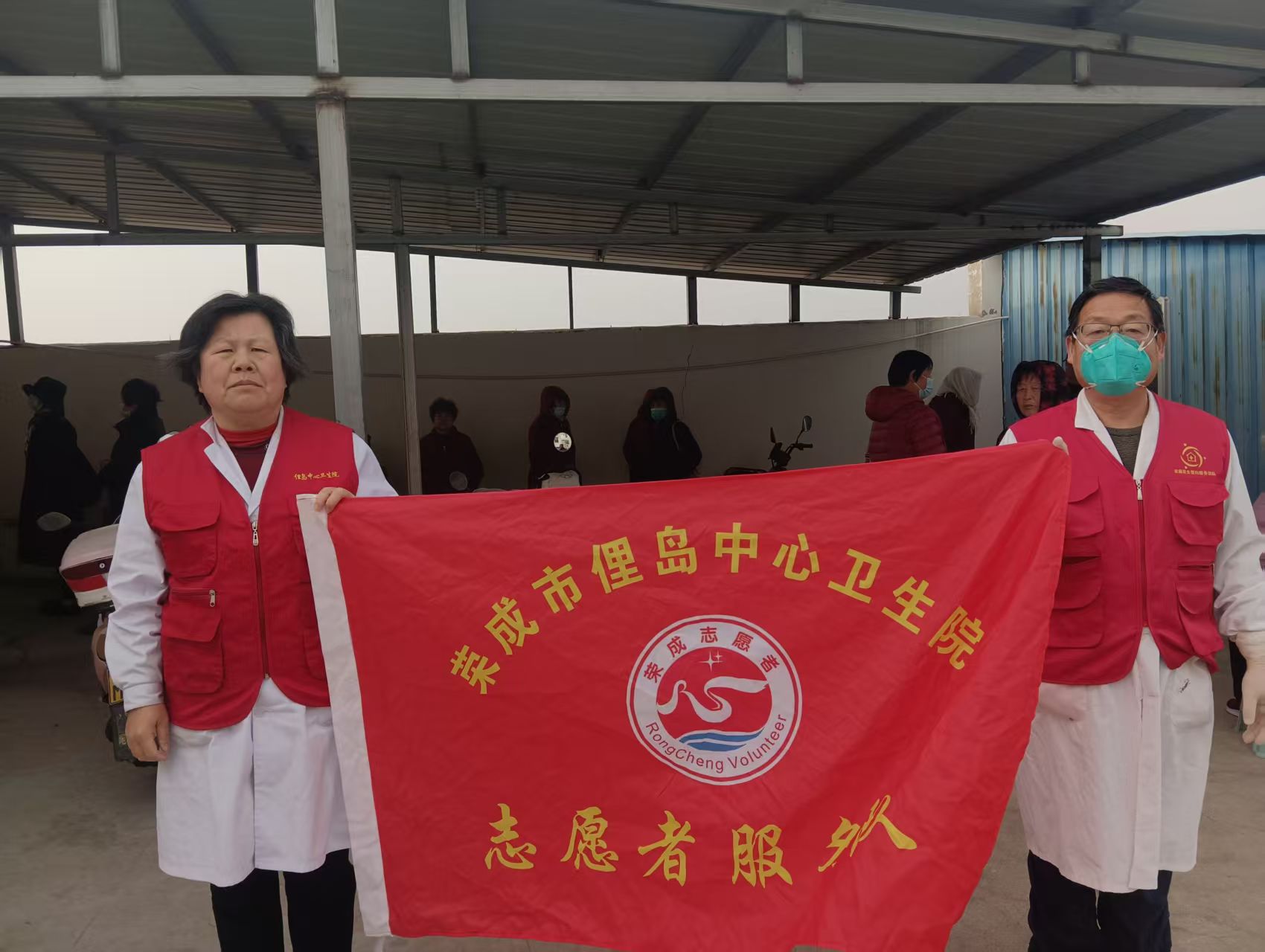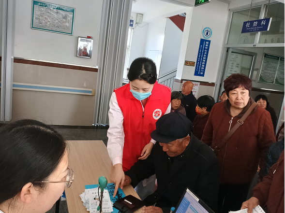 荣成市俚岛中心卫生院志愿服务队开展关爱老年健康查体现场引导志愿活动