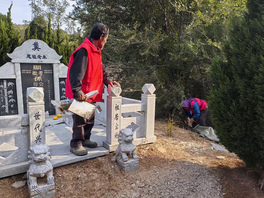 埠柳镇蓦驾山村志愿服务队:开展收拾坟地周边树枝、杂草志愿服务活动
