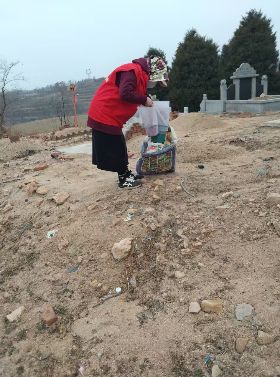 二胪村志愿服务队开展对村北墓地拾白色垃圾志愿活动