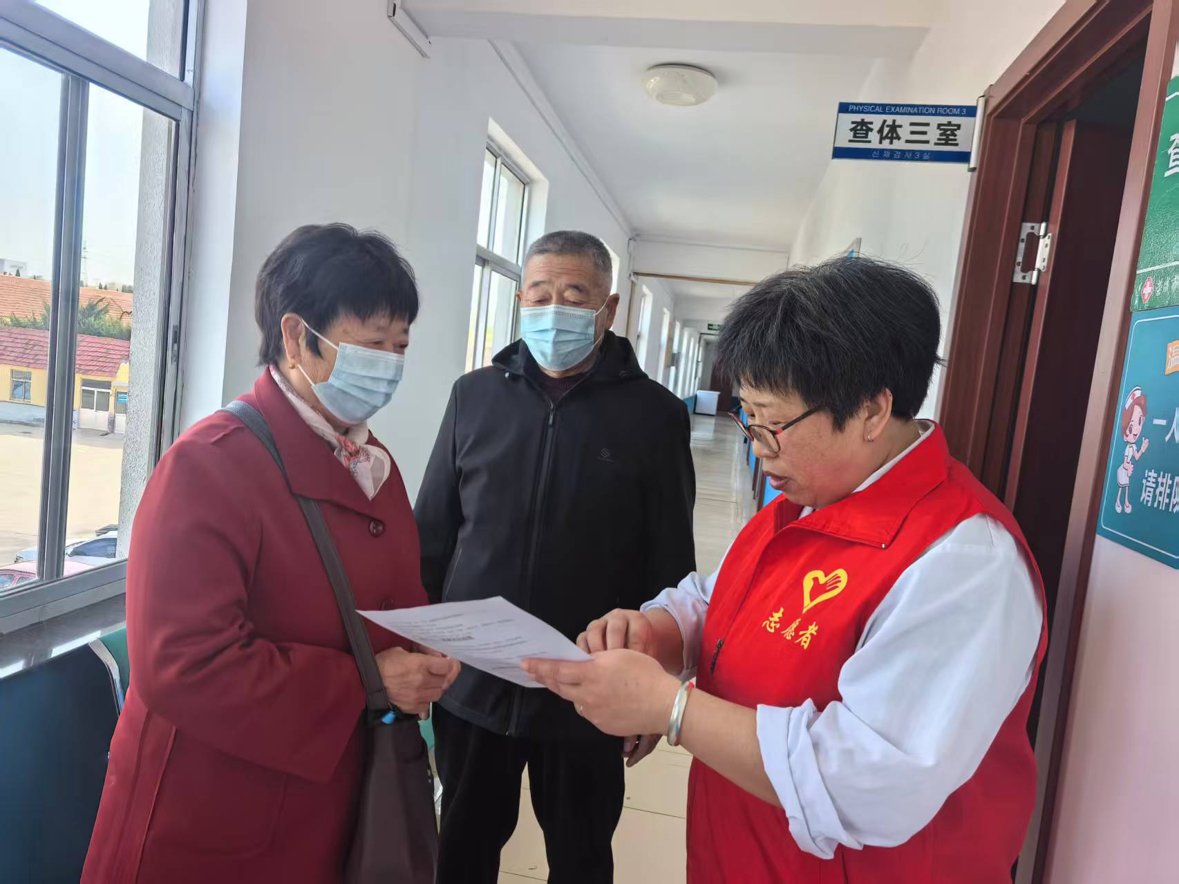 龙须岛卫生院志愿服务队4月21日开展老年人查体现场引导协助志愿活动